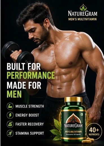 NatureGram Men’s Multivitamin is a premium nutraceutical supplement specially formulated to support the daily nutritional needs of modern men. Packed with a powerful blend of essential vitamins, minerals, antioxidants, and herbal extracts, it helps bridge nutritional gaps caused by today’s fast-paced lifestyle.
